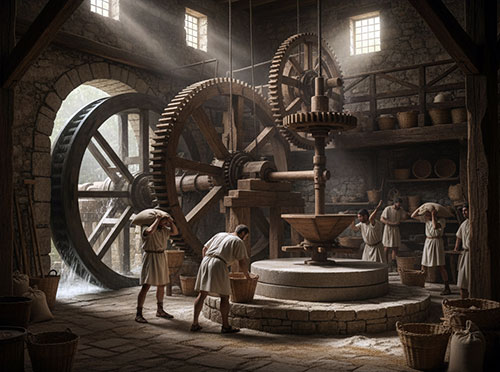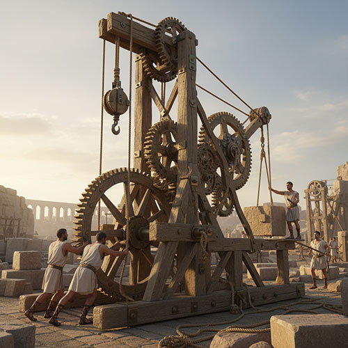 De Romeinen waren meesters in het toepassen van deze Griekse en andere technieken. Zij gebruikten tandwielen op grote schaal in: